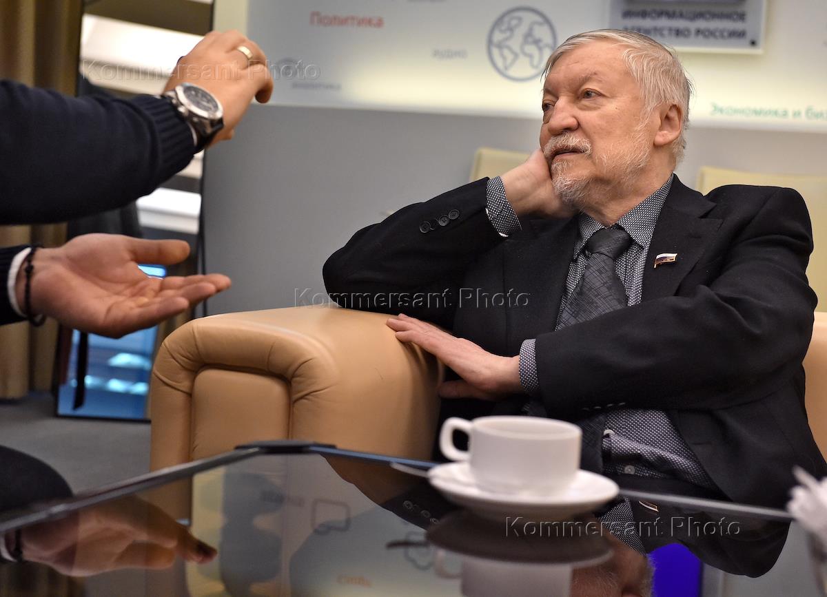 Пресс-конференция вице-чемпиона мира Сергея Карякина и многократного чемпиона мира Анатолия Карпова в преддверии выборов президента Федерации шахмат России (ФШР) 17 декабря 2022 года в пресс-центре ТАСС. Член комитета Государственной думы России по науке и высшему образованию Анатолий Карпов во время пресс-конференции.