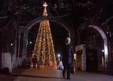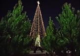 Жанровая фотография. Главная городская новогодняя елка у входа в Центральный парк города.