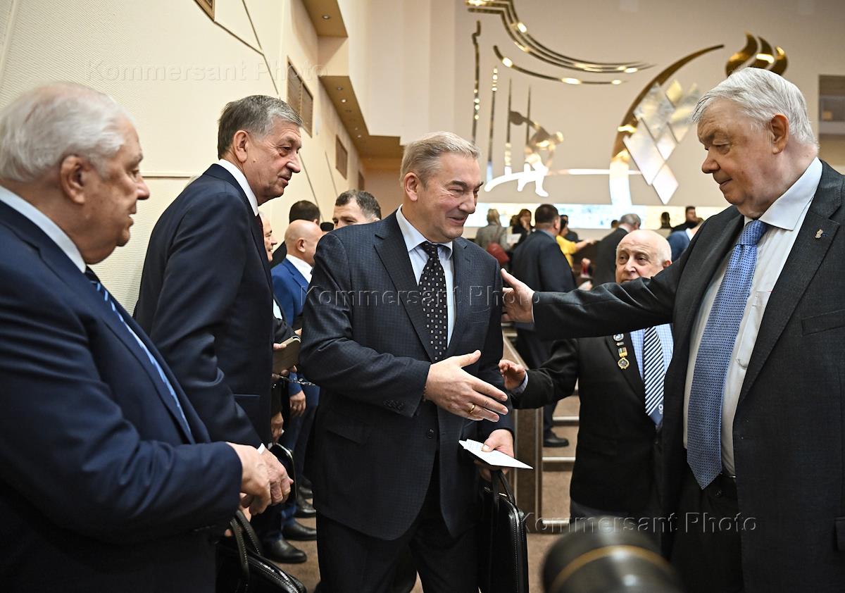 Ежегодное Олимпийское собрание в Олимпийском комитете России (ОКР). Генеральный директор Федерации фигурного катания на коньках России (ФФККР) Александр Коган (второй слева) перед началом собрания.