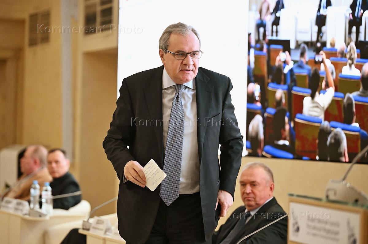 Всероссийская конференция уполномоченных по защите прав предпринимателей в Общественной палате России. Президент торгово-промышленной палаты (ТПП) России Сергей Катырин во время конференции.