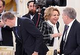 Заседание Государственного совета (Госсовета) России по вопросам реализации молодежной политики в современных условиях в Кремле. Слева направо: губернатор Чукотского автономного округа Роман Копин, председатель Совета Федерации России Вален6тина Матвиенко и глава города Белогорска Амурской области Станислав Мелюков перед началом заседания.