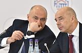 Заседание комиссии Госсовета России по направлению "Экономика и финансы" в башне "Око" в Московском международном деловом центре "Москва-Сити". Губернатор Камчатского края Владимир Солодов (слева) и губернатор Владимирской области Александр Авдеев во время заседания.