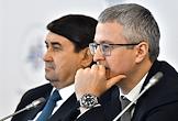 Заседание комиссии Госсовета России по направлению "Экономика и финансы" в башне "Око" в Московском международном деловом центре "Москва-Сити". Заместитель полномочного представителя Президента России в Центральном Федеральном округе Артур Ниязметов (справа) во время заседания.