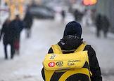 Жанровая фотография. Работа курьерских служб. Курьер службы доставки еды "Яндекс.Еда" во время выполнения заказа.