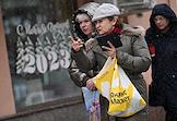 Жанровая фотография. Женщина с пакетом "Яндекс. Маркет".