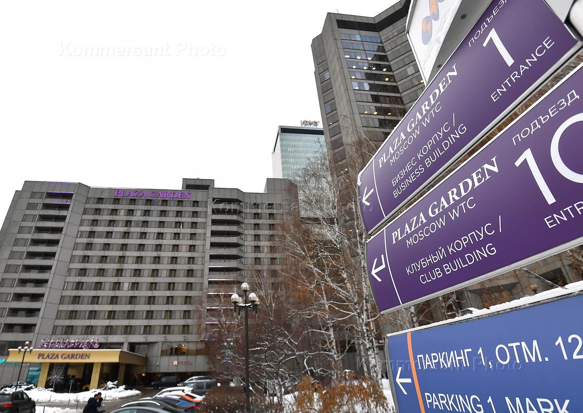 Вывеска отеля "Plaza Garden Moscow WTC" (бывшее название "Crowne Plaza Moscow WTC") на Краснопресненской набережной.