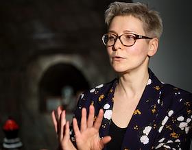 Церемония открытия выставки "Алиса в Нейроцарстве" в рамках проекта #Подклет прошела в парке "Зарядье" (Старый Английский двор). Начальник управления научно просветительских проектов парка "Зарядье" Елена Войцеховская во время церемонии.