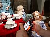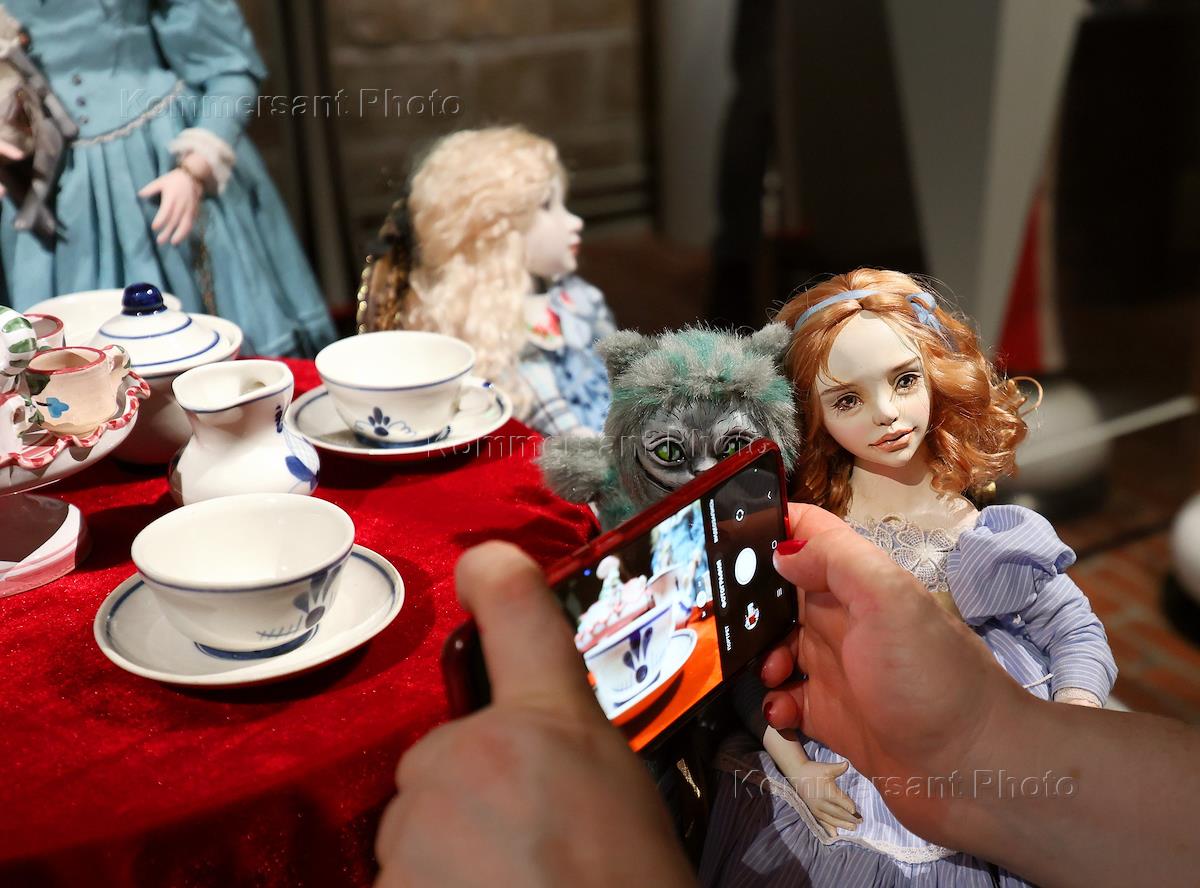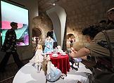Церемония открытия выставки "Алиса в Нейроцарстве" в рамках проекта #Подклет прошела в парке "Зарядье" (Старый Английский двор). Жанровая фотография. Экспонаты выставки.
