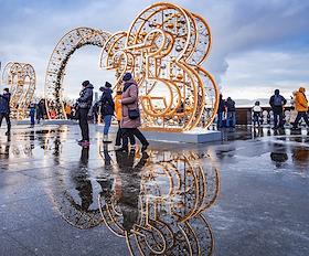 Виды Москвы. Жанровая фотография. Декоративная конструкция с символикой спецоперации - буква Z - в ландшафтом парке "Зарядье".