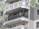 Пожар в жилом доме на улице Дмитрия Ульянова. Эвакуированные жильцы на балконе дома.