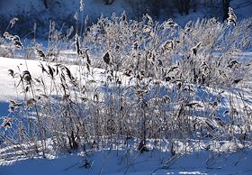 Виды Суздаля. Жанровая фотография. Сухая трава в заснеженном поле.