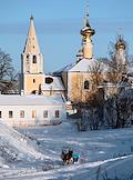 Виды Суздаля. Церковь Николая Чудотворца (Никольская церковь) Жанровая фотография. Катания на санях по городу.
