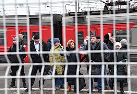 Виды Москвы. Жанровая фотография. Пассажиры на платформе Курского вокзала.