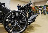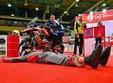 Выставка путешествий и техники для активного отдыха "Поехали 2023" в Центральном выставочном комплексе "Экспоцентр". Жанровая фотография. Тренажер, помогающий держать баланс на мотоцикле.