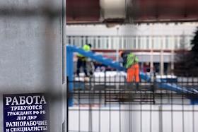 Виды Москвы. Жанровая фотография. Объявление "Работа. Требуются граждане РФ, РБ, ДНР, ЛНР. Разнорабочие и специалисты".