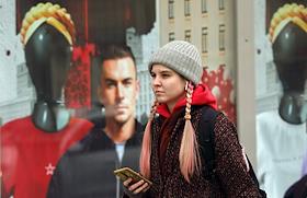 Жанровая фотография. Девушка на фоне рекламы фирменного магазина "Армия России".