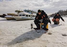 Виды Москвы. Жанровая фотография. Зимняя рыбалка на льду реки Грачёвка в районе Северного Тушино.