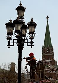 Виды Москвы. Жанровая фотография. Весенняя покраска фонарей в Александровском саду.