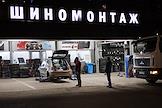 Жанровая фотография. Автомобили в автомастерской "Шиномонтаж".
