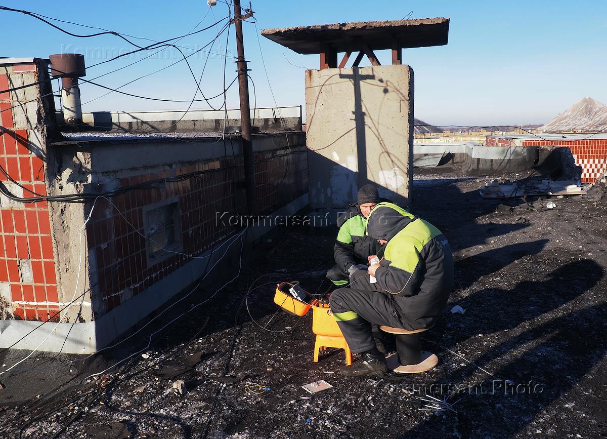 Виды Донецка во время проведения специальной военной операции Вооруженных сил России. Последствия обстрела Петровского района. Электрики восстанавливают линию энергоснабжения дома, пострадавшего в результате обстрела.