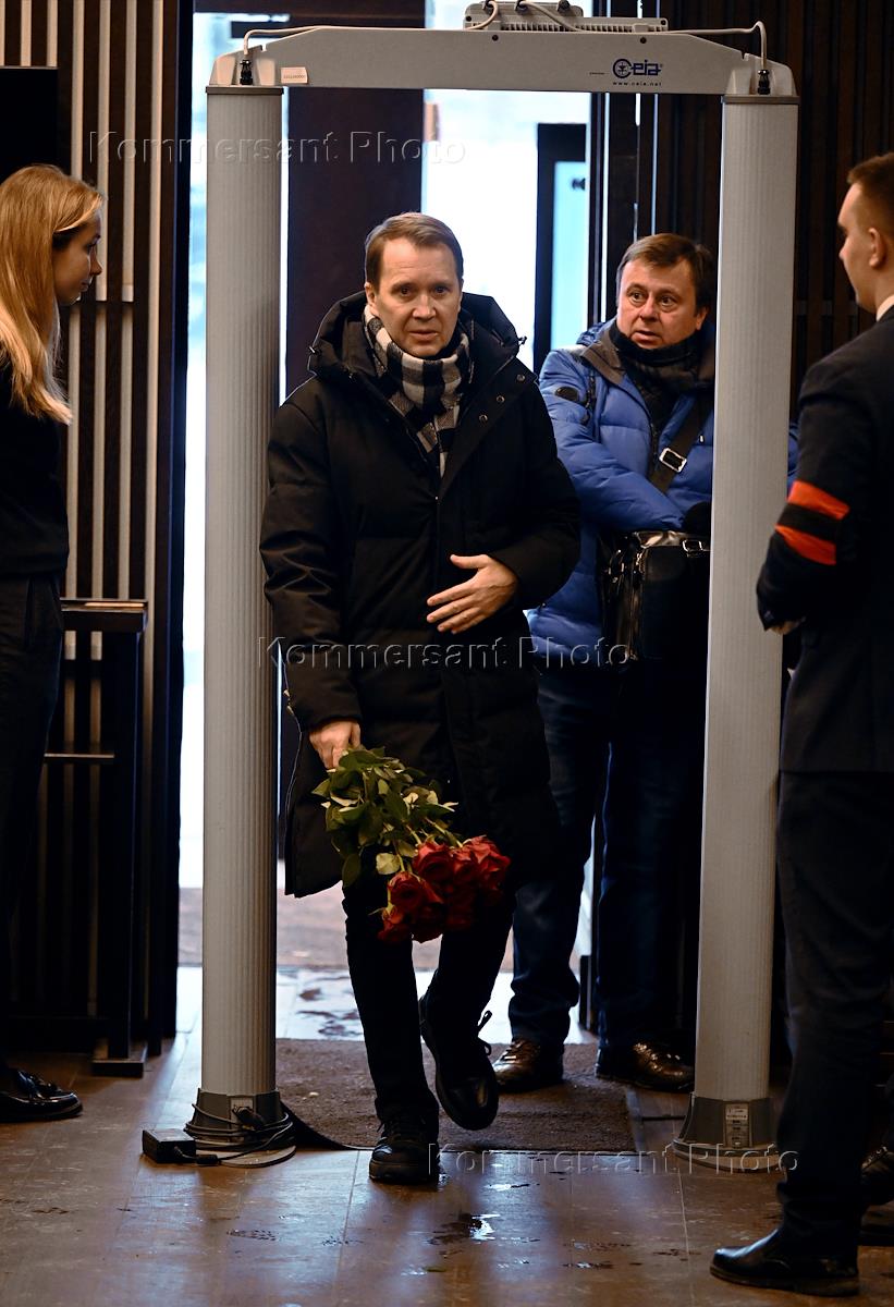 Церемония прощания с бывшим директором театра "Современник" и МХТ имени Чехова Леонидом Эрманом в театре "Современник". Художественный руководитель Государственного театра наций Евгений Миронов на церемонии.
