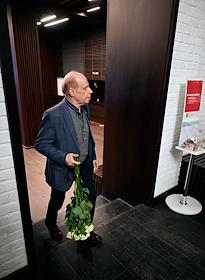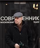 Церемония прощания с бывшим директором театра "Современник" и Московского Художественного театра имени Чехова Леонидом Эрманом в театре "Современник". Актер Авангард Леонтьев после окончания церемонии.
