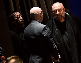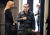 Церемония прощания с бывшим директором театра "Современник" и Московского Художественного театра имени Чехова Леонидом Эрманом в театре "Современник". Художественный руководитель Государственного театра наций Евгений Миронов (в центре) перед началом церемонии.