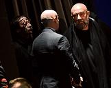 Церемония прощания с бывшим директором театра "Современник" и Московского Художественного театра имени Чехова Леонидом Эрманом в театре "Современник". Художественный руководитель Московского художественного театра (МХТ) имени А.П.Чехова Константин Хабенский (в центре) перед началом церемонии.