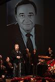 Церемония прощания с бывшим директором театра "Современник" и Московского Художественного театра имени Чехова Леонидом Эрманом в театре "Современник". Специальный представитель президента России по международному культурному сотрудничеству Михаил Швыдков (слева) во время выступления на церемонии.