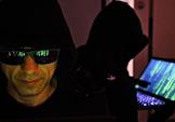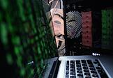 Кибербезопасность. Жанровая фотография. Мужчина в темных очках у компьютера.
