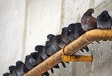 Жанровая фотография. Сосульки на ленте ограждения жилого дома.