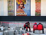 Виды Москвы. Жанровая фотография. Укладка тротуарной плитки на Никитском бульваре.