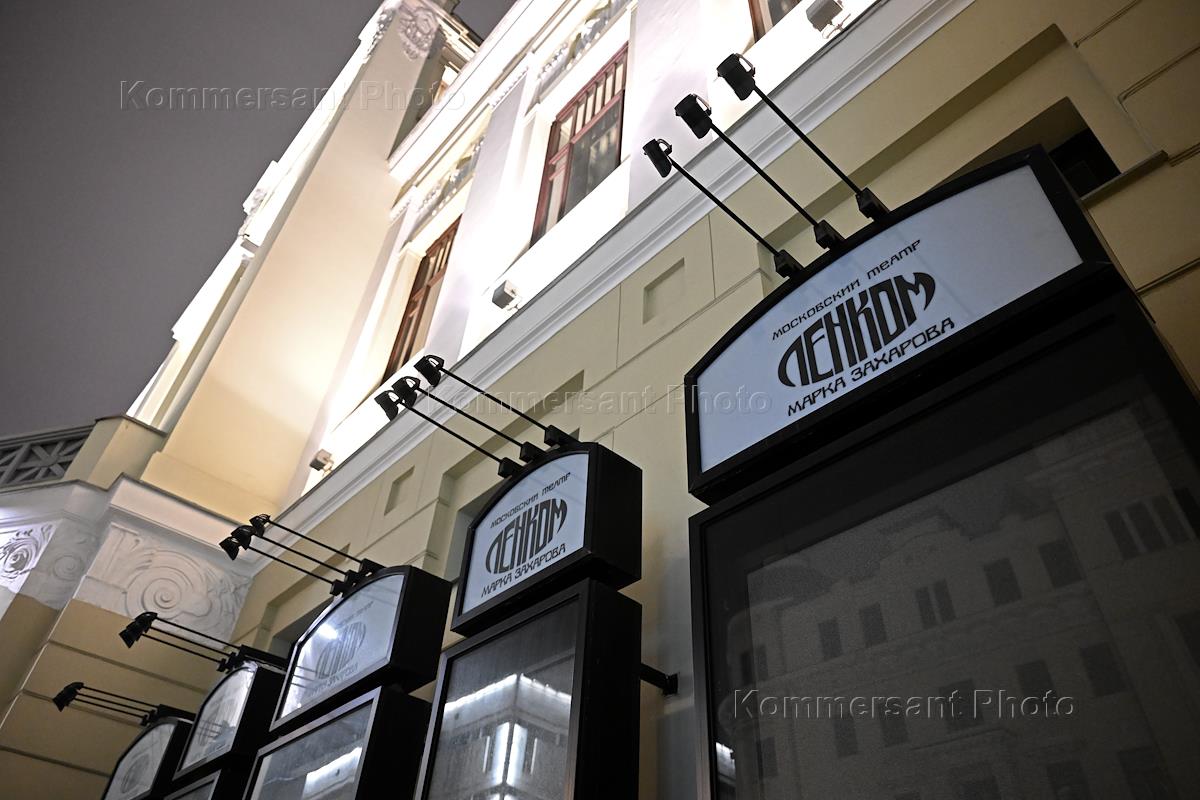 Жанровая фотография. Объявление об отмене и переносе спектаклей театра "Ленком" в связи со смертью актрисы театра Инны Чурикова.