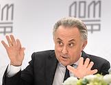 Церемония подписания двустороннего соглашения о сотрудничестве по вопросам защиты жилищных прав и законных интересов несовершеннолетних граждан, включая лиц из числа детей-сирот и детей, оставшихся без попечения родителей, выпускников детских домов и интернатов, инвалидов молодого возраста (от 18 до 35 лет), а также семей с детьми, находящихся в трудной жизненной ситуации или социально опасном положении между АО "ДОМ.РФ" и уполномоченным при президенте России по правам ребенка Марией Львовой-Беловой. Генеральный директор АО "ДОМ.РФ" Виталий Мутко во время церемонии.