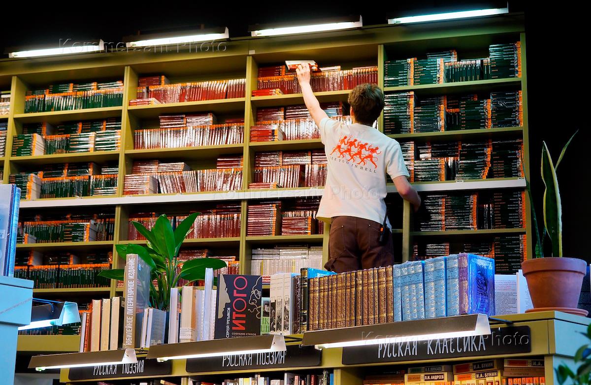 Виды Санкт-Петербурга. Жанровая фотография. Покупатели в книжном магазине "Подписные издания.