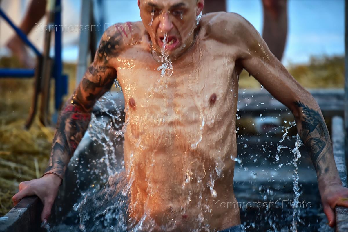 Праздник Крещения Господня. Крещенские купания в проруби на реке Оби.