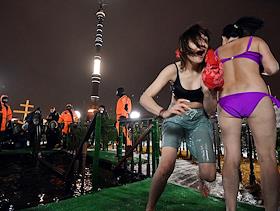 Праздник Крещения Господня. Крещенские купания в Дворцовом пруду парка "Останкино".
