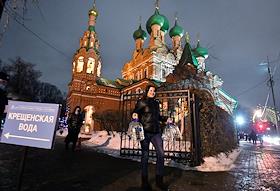 Праздник Крещения Господня. Прихожане во время у храма Троицы Живоначальной в Останкино.