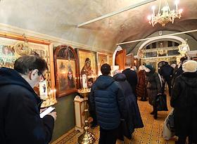 Праздник Крещения Господня. Прихожане во время службы в храм6е Троицы Живоначальной в Останкино.