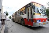 Частный коммерческий автобус на остановке общественного транспорта на Красном проспекте.