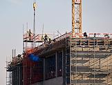 Рабочая поездка председателя правительства России Михаила Мишустина в Ашхабад. Виды Ашхабада. Жанровая фотография. Рабочие во время строительства многоэтажного здания.