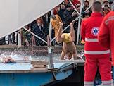 Праздник Крещения Господня. Верующие во время крещенских купаний в Савском озере после совершения Крестного хода от храма Святого Георгия.