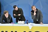 Кубок Первого канала 2023 по фигурному катанию в Многофункциональном спортивном комплексе (МСК) "ЦСКА Арена". Командный турнир. Короткая программа. Слева направо: тренеры по фигурному катанию Даниил Глейхенгауз, Этери Тутберидзе и Сергей Дудаков во время соревнований.