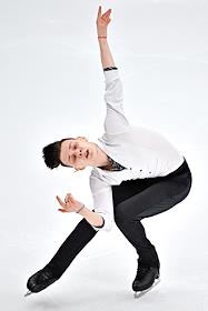 Кубок Первого канала 2023 по фигурному катанию в Многофункциональном спортивном комплексе (МСК) "ЦСКА Арена". Командный турнир. Короткая программа. Мужчины. Фигуристка Петр Гуменник во время выступления за команду "Красная машина".