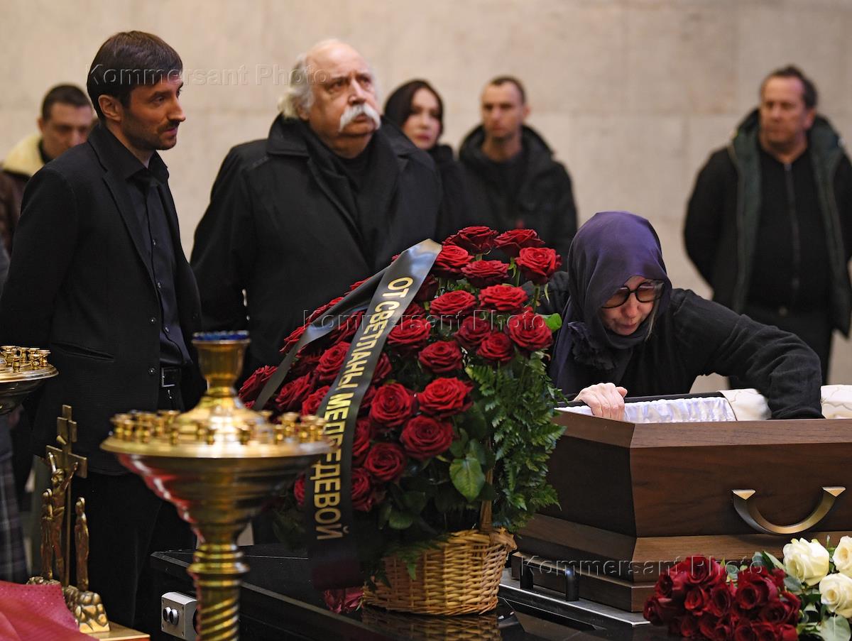 Церемония прощания с режиссером Николаем Досталем в ритуальном зале Центральной клинической больницы (ЦКБ) №1 Управления делами президента России.