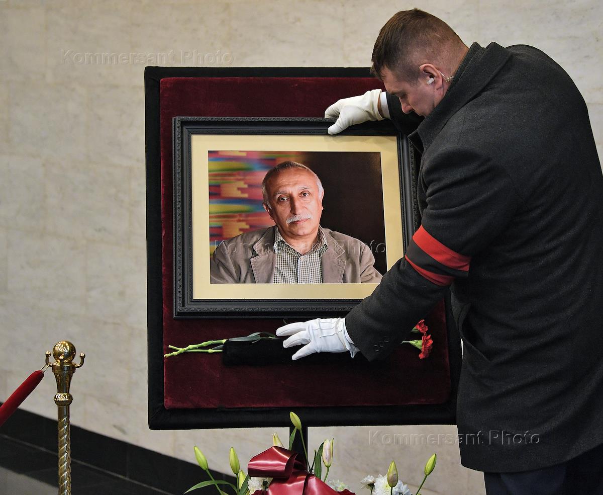 Церемония прощания с режиссером Николаем Досталем в ритуальном зале Центральной клинической больницы (ЦКБ) №1 Управления делами президента России.