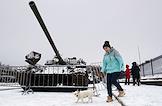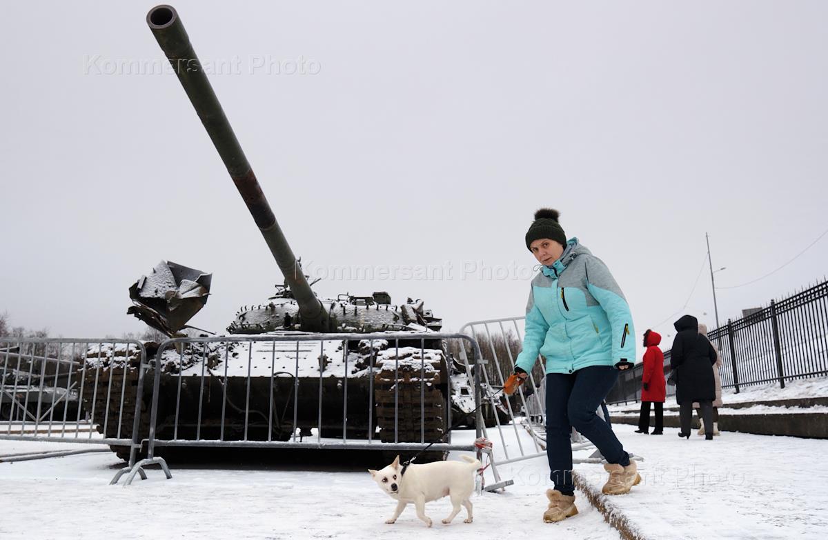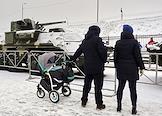 Посетители открытой площадки музея-заповедника "Прорыв блокады Ленинграда". Танки - музейные экспонаты на территории музея-заповедника в Кировском городском поселении.