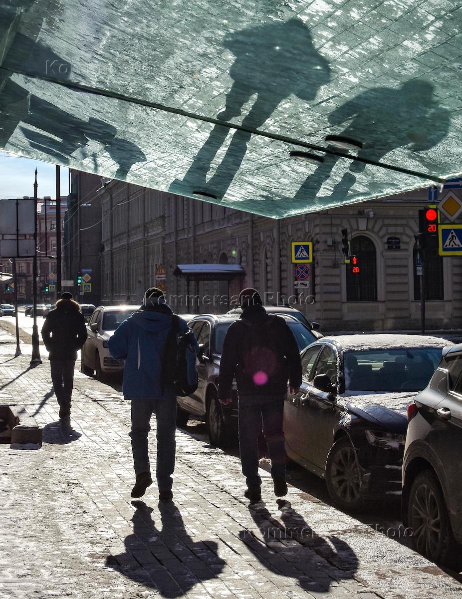 Жанровая фотография. Тени ног прохожих в закатных лучах солнца на Прачечном мосту.