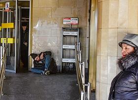 Виды Санкт-Петербурга. Жанровая фотография. Мужчина спит, сидя у выхода из метро "Гостиный Двор".