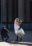 Жанровая фотография. Жених и невеста во время фотографирования на площади у Казанского собора.